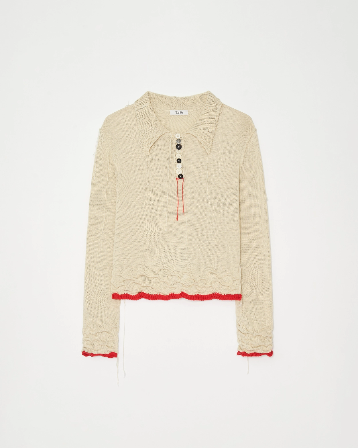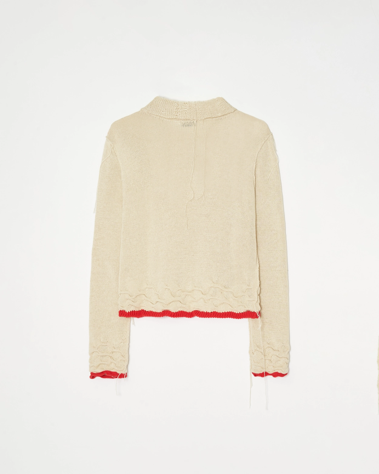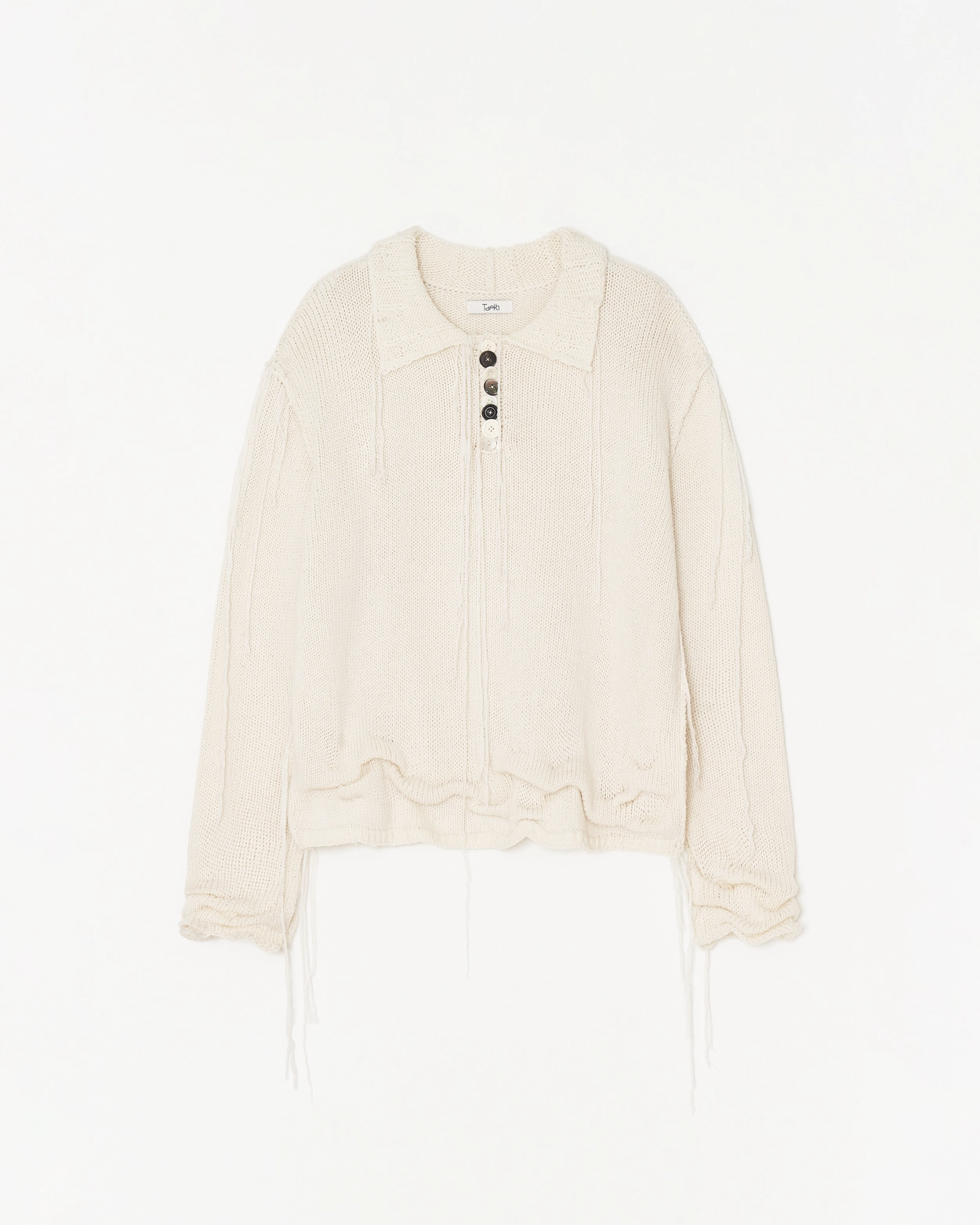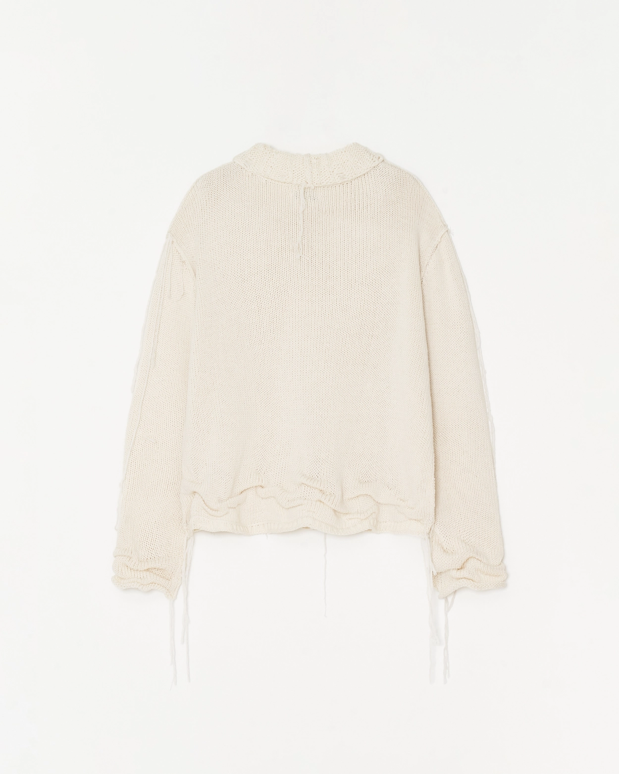 [Made-to-Order] Hand Distressed collar knit 001_ivory