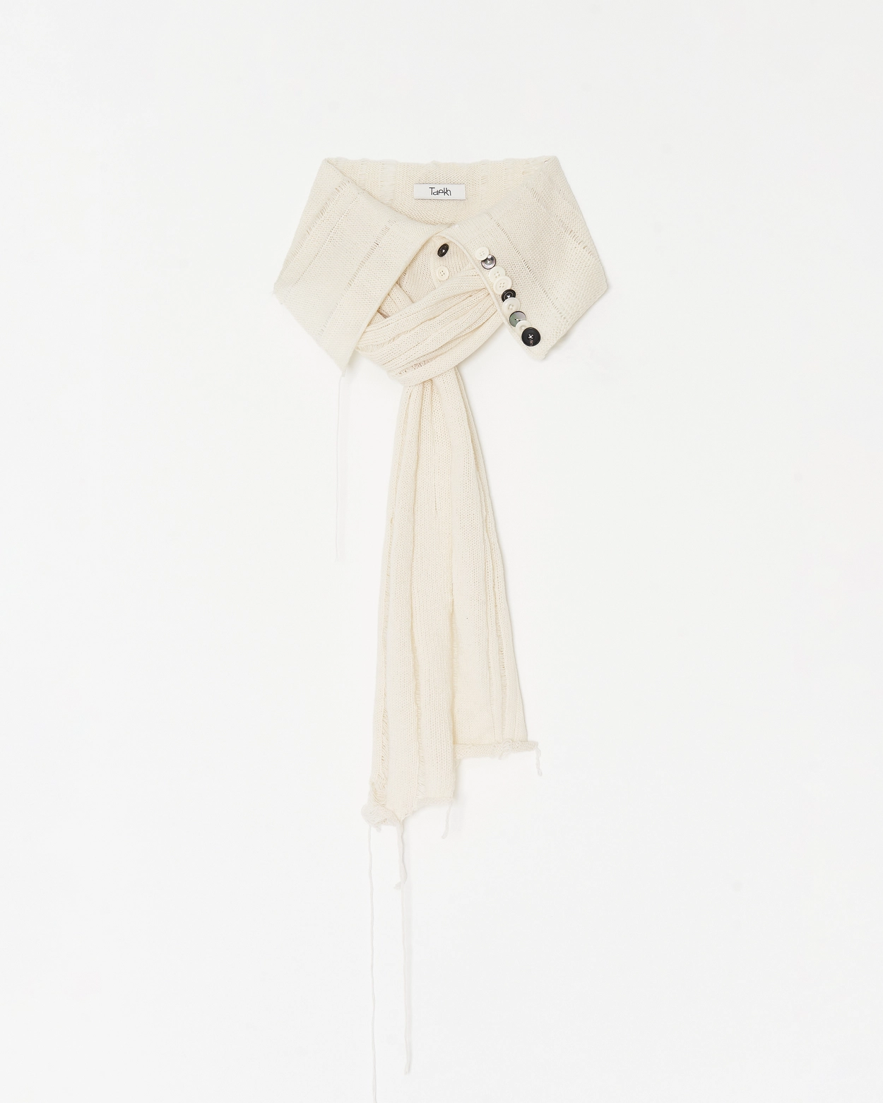 Button Work Collar Cashmere Scarf 001 _ Ivory