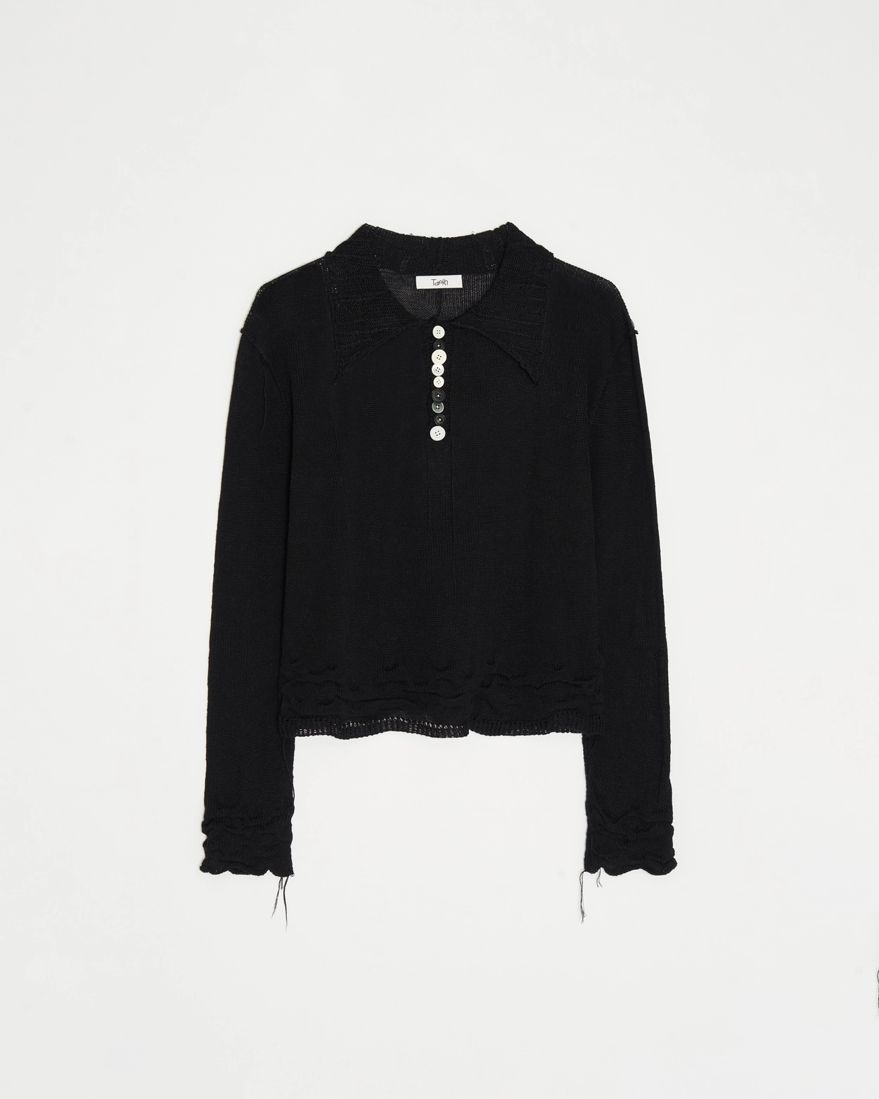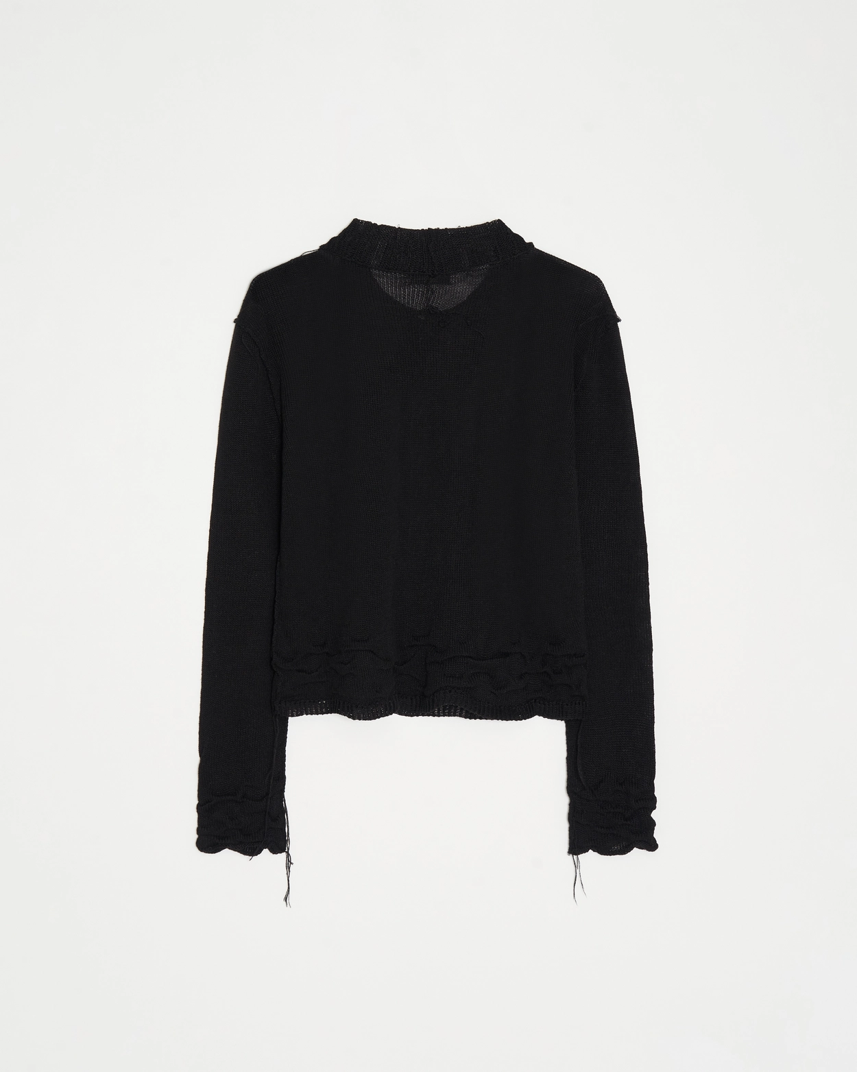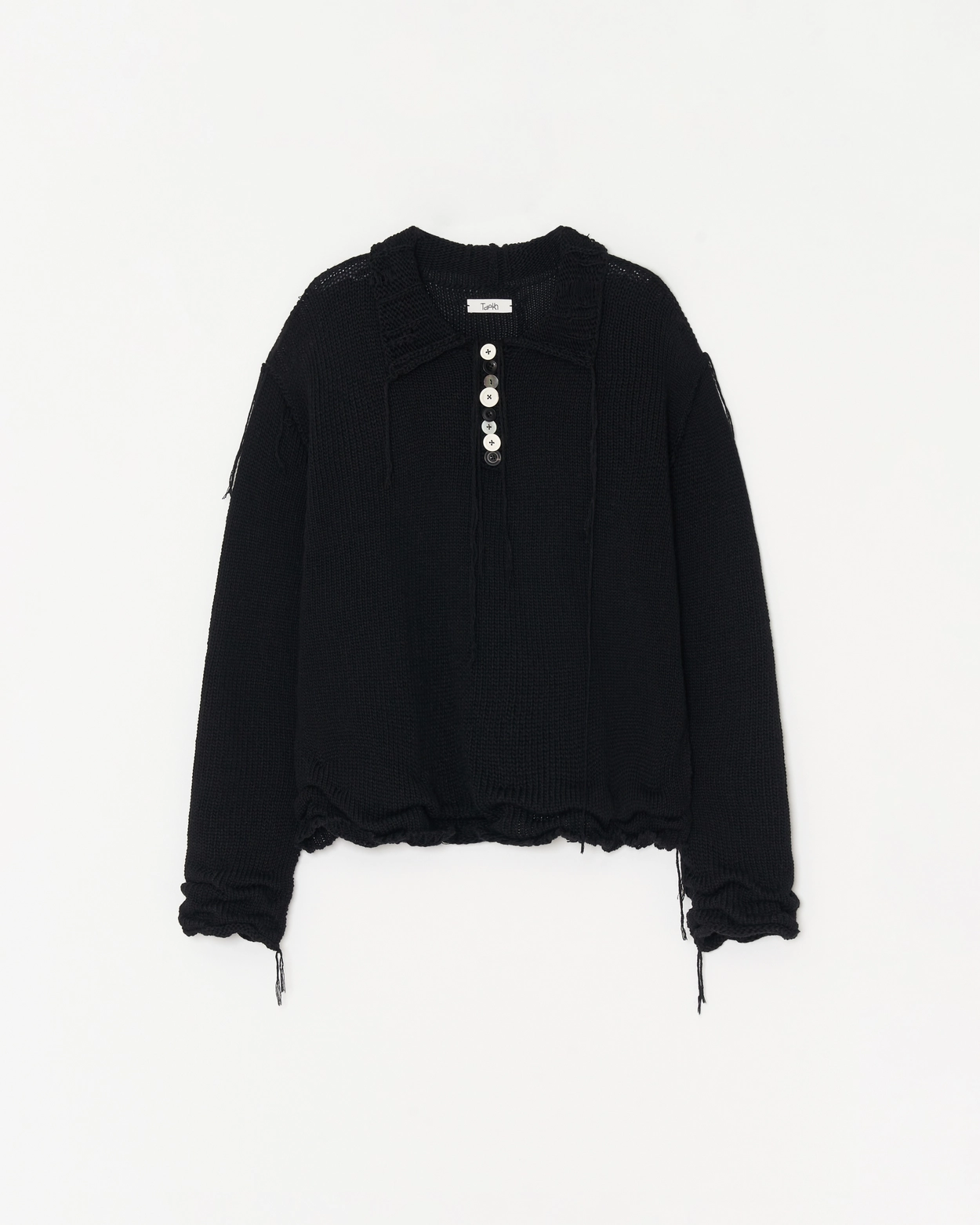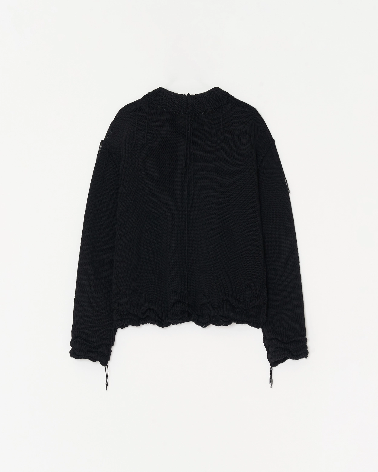 [Made-to-Order] Hand Distressed collar knit 001_black