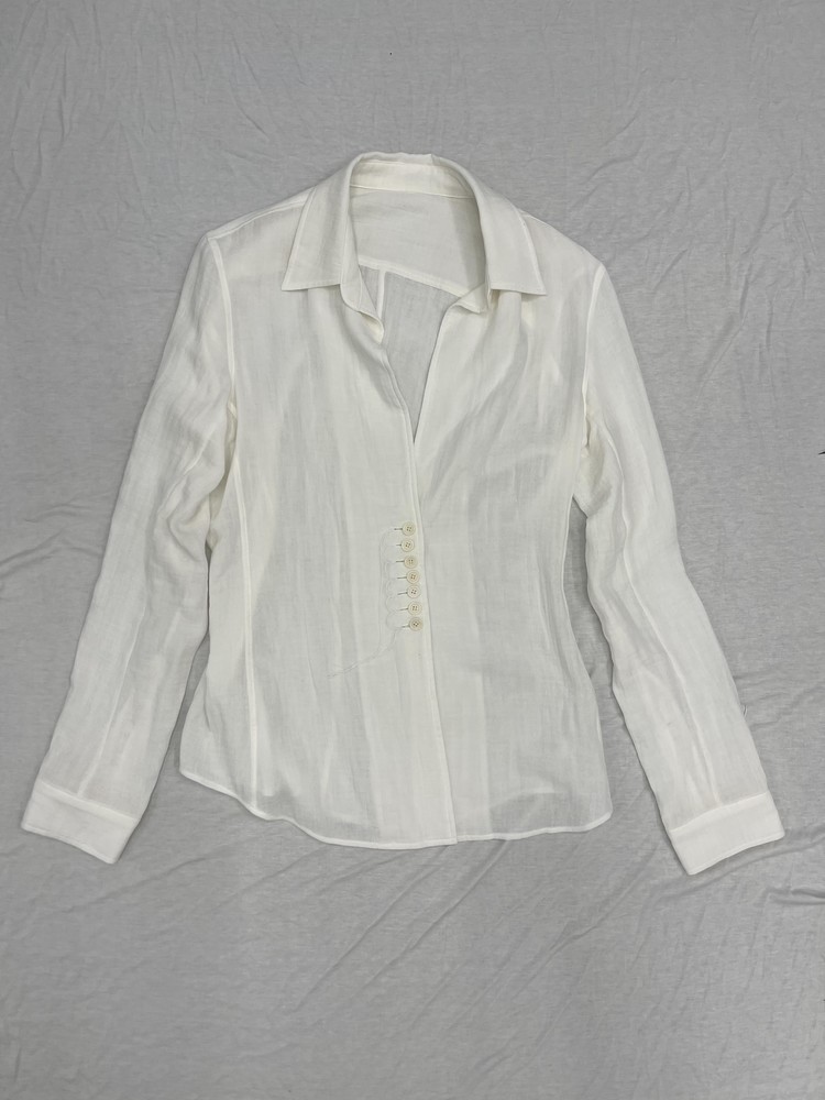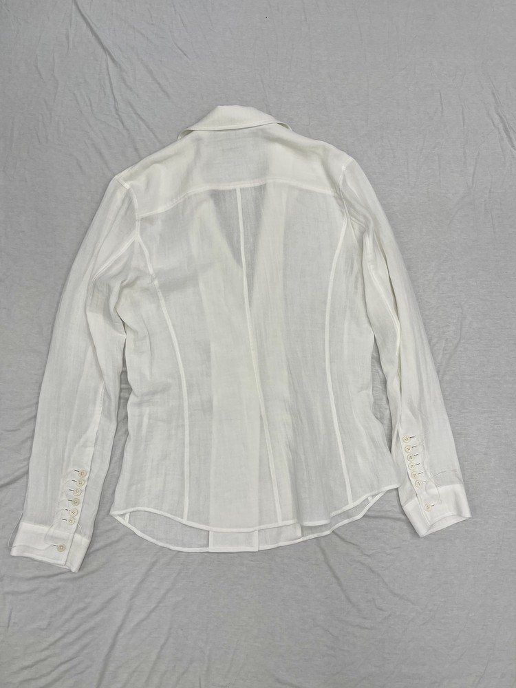 더블 거즈 원단을 사용해 촉감이 부드러운 여름용 셔츠자켓 입니다. 허리를 잡아주는 테일러드 핏의 허리와 자켓여밈 형식의 소뼈 단추 디테일의 셔츠입니다.