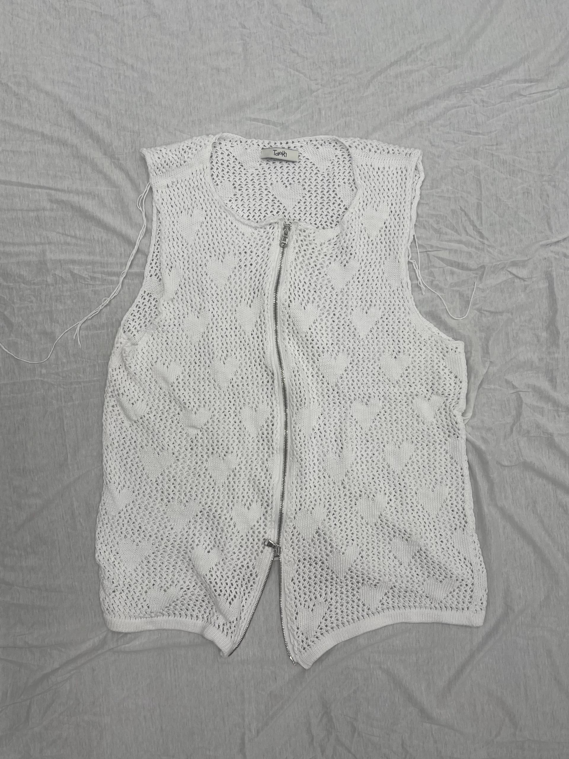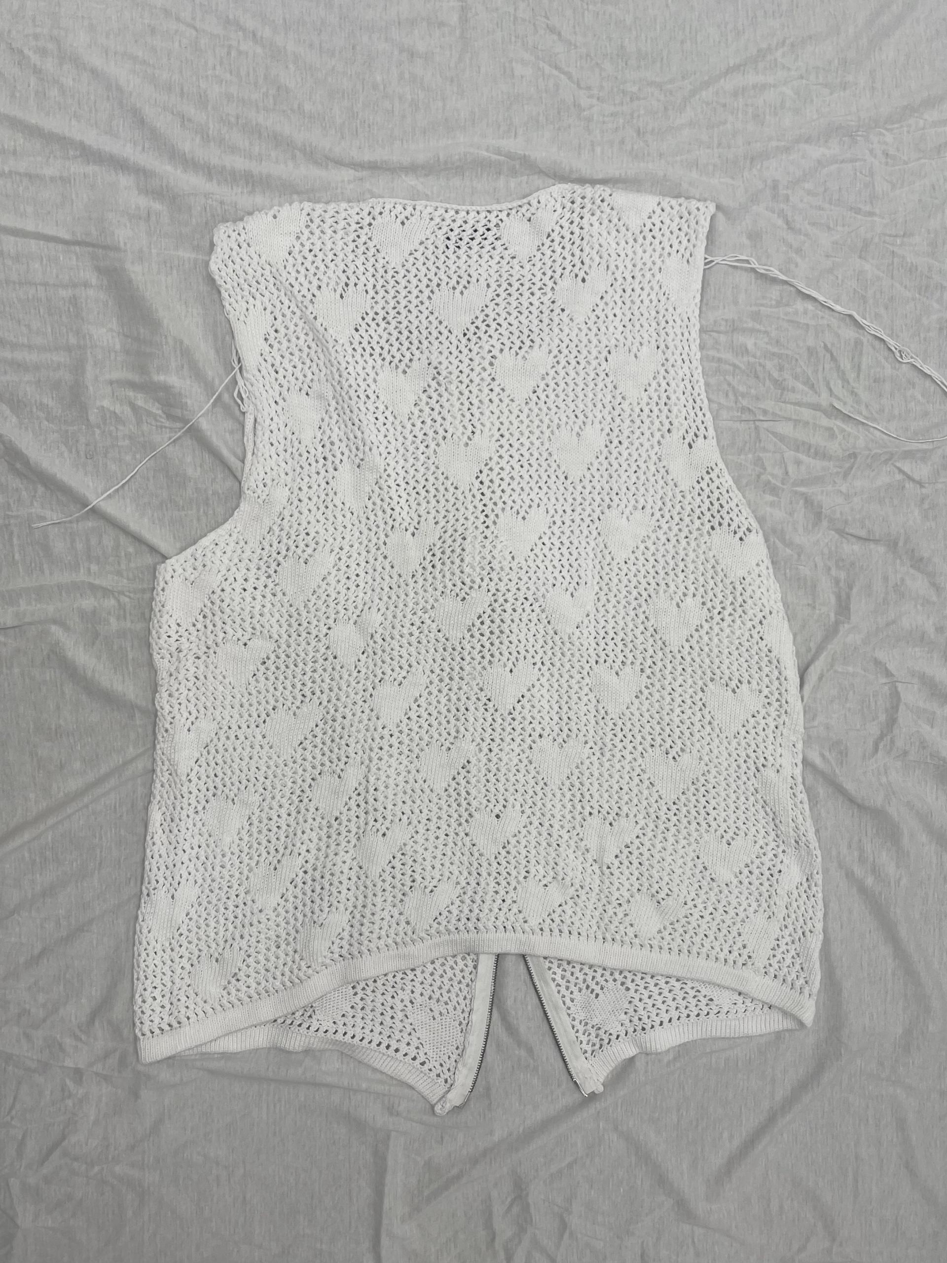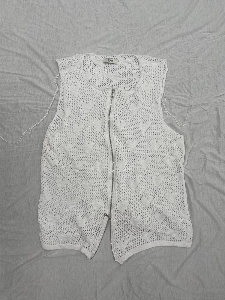 하트 모티프로 짜인 코튼 원사의 니트 베스트입니다.