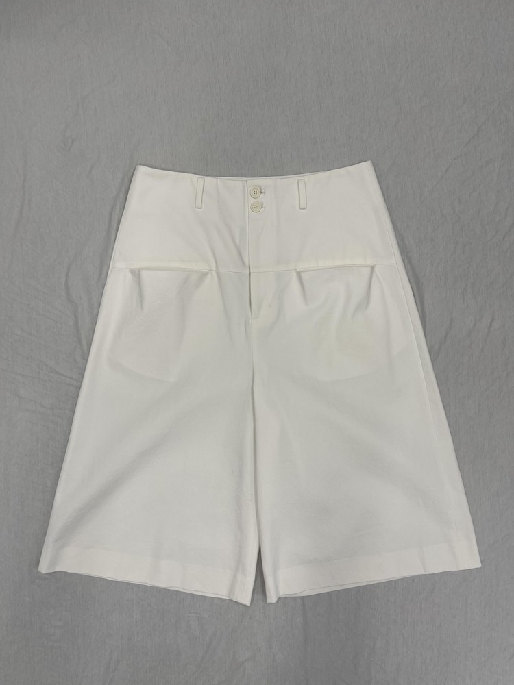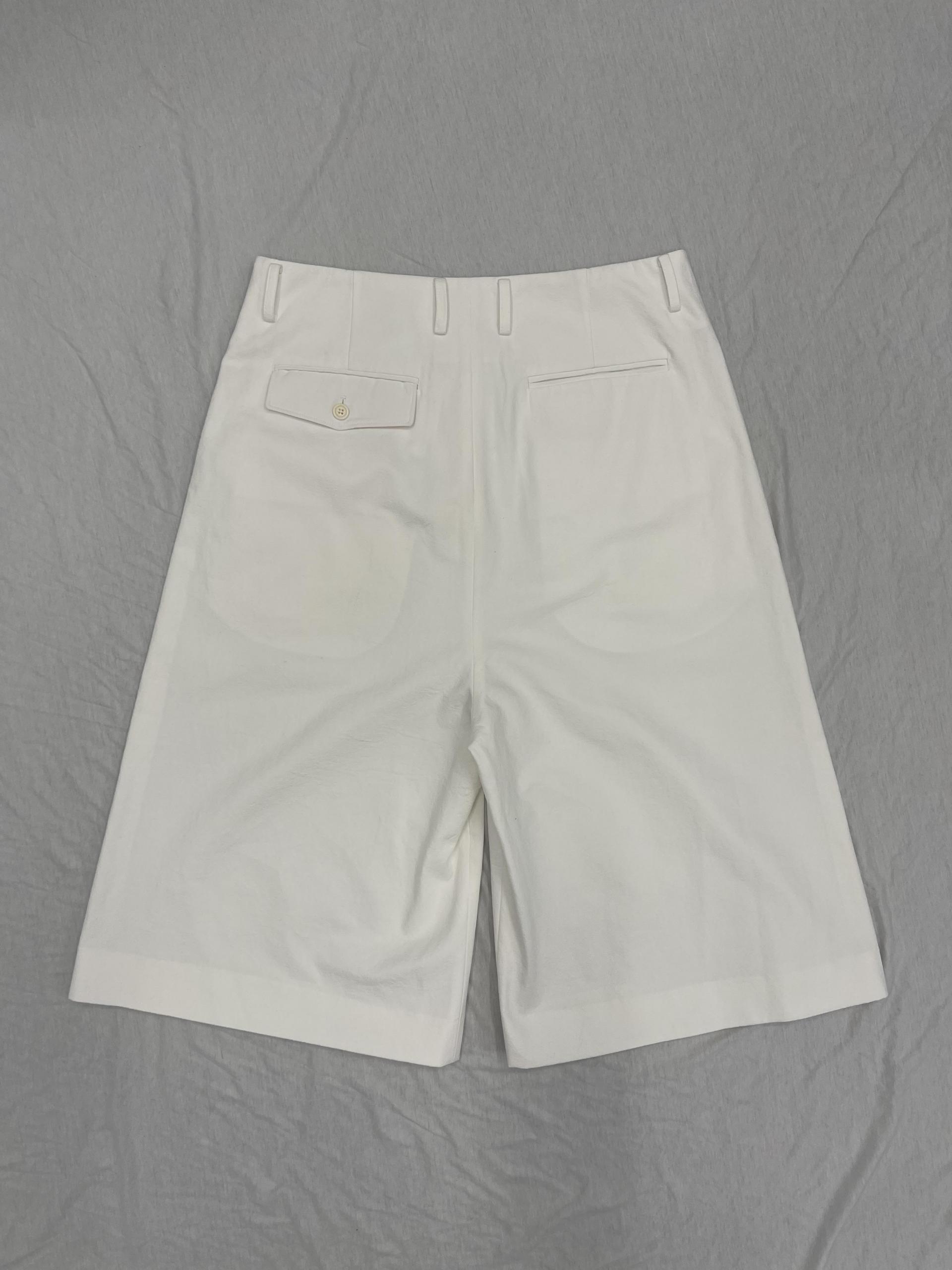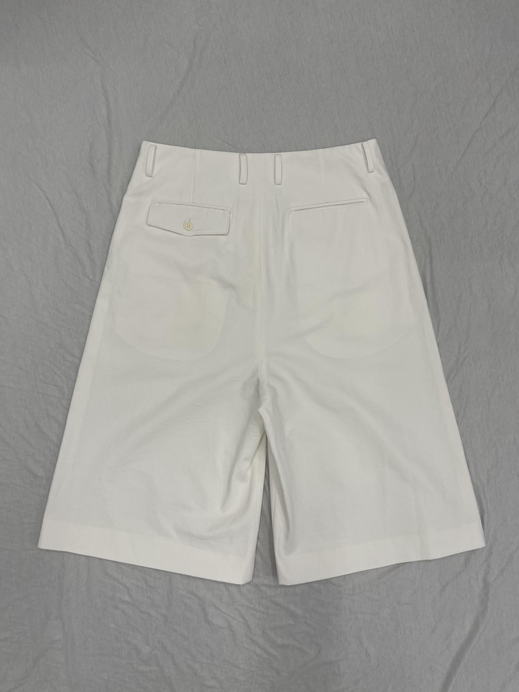 포켓에 변주를 준 와이드 핏의 반바지입니다. 두께감있는 10수 화이트 코튼으로 제작되었습니다.