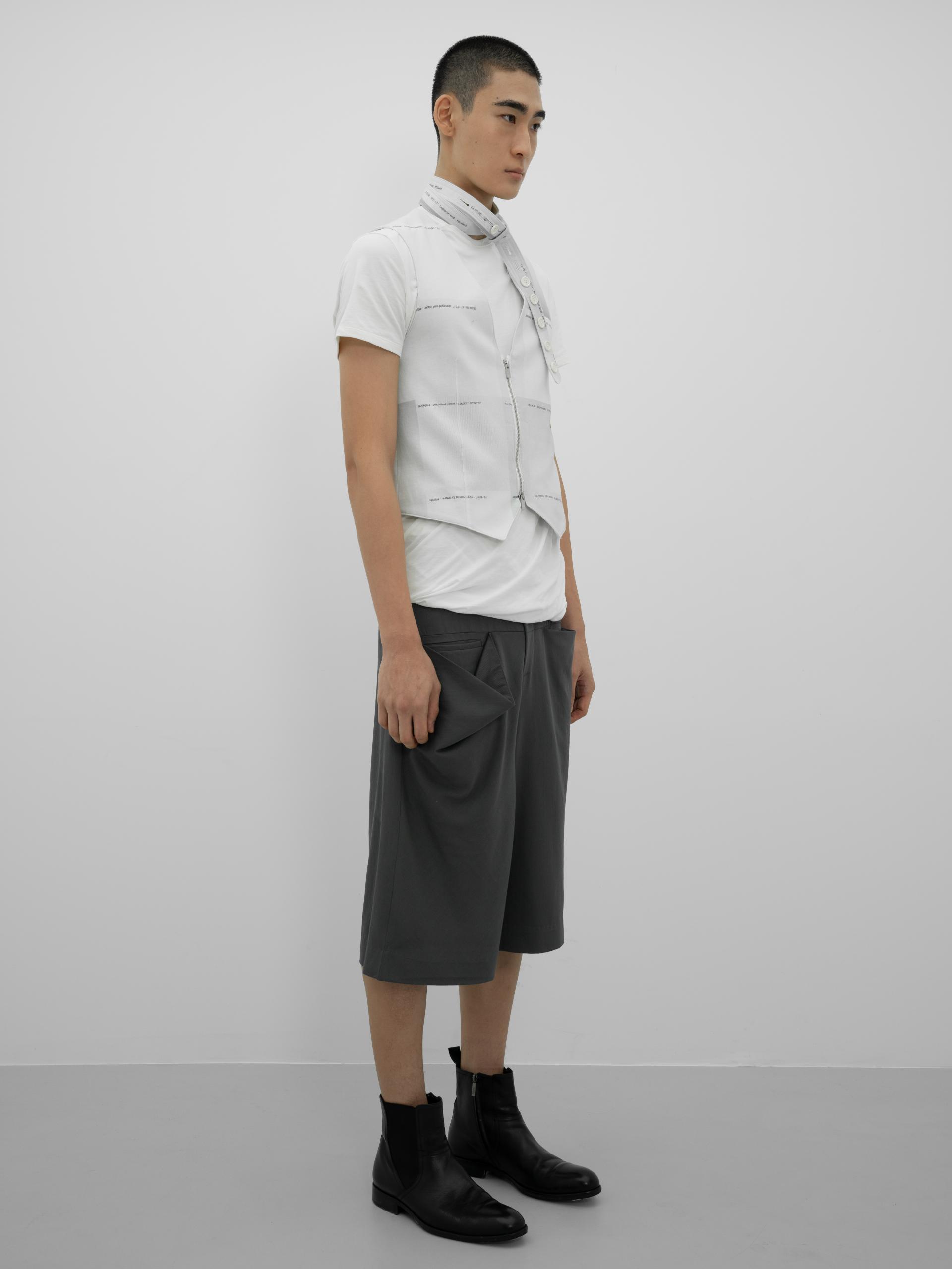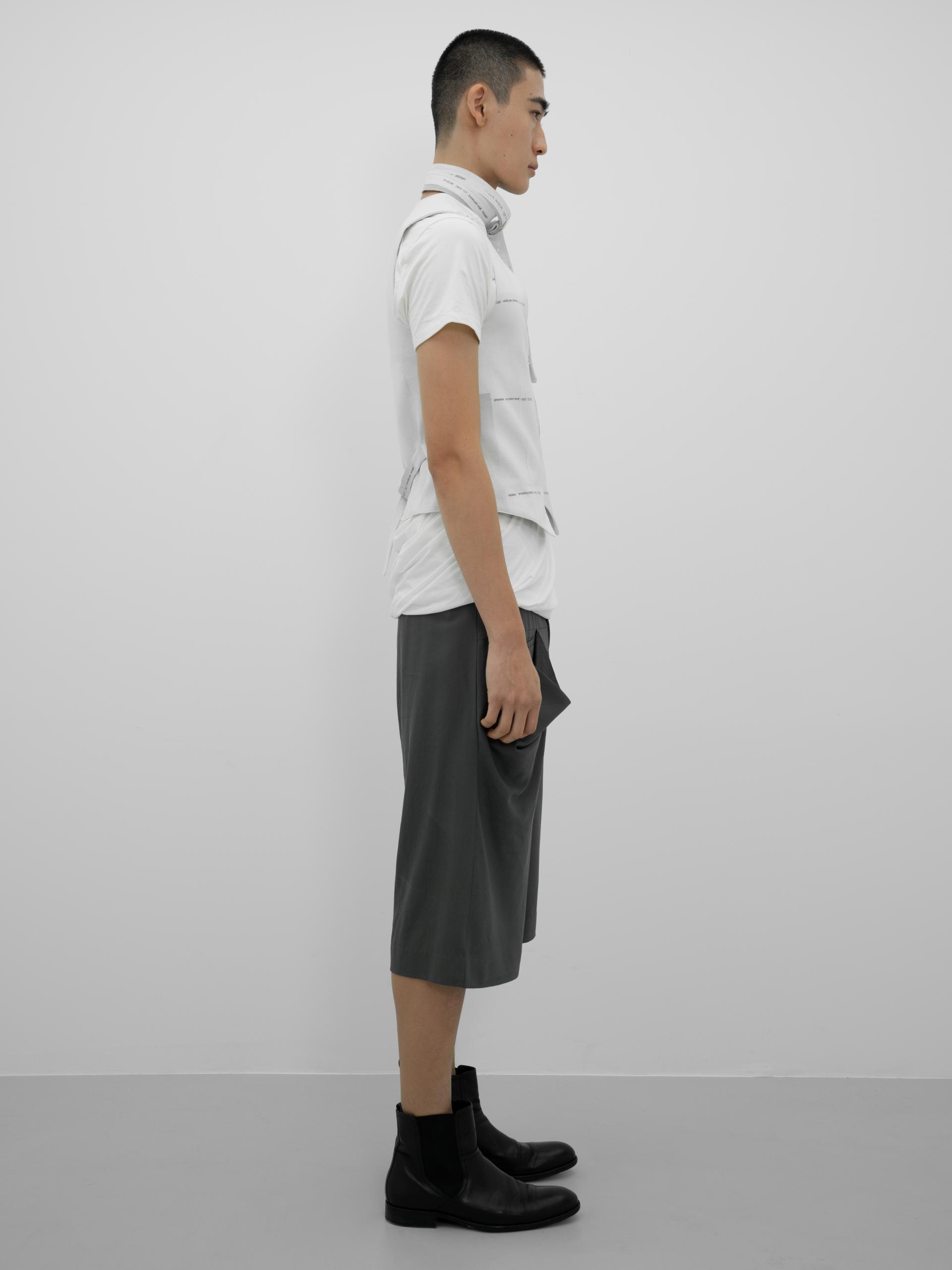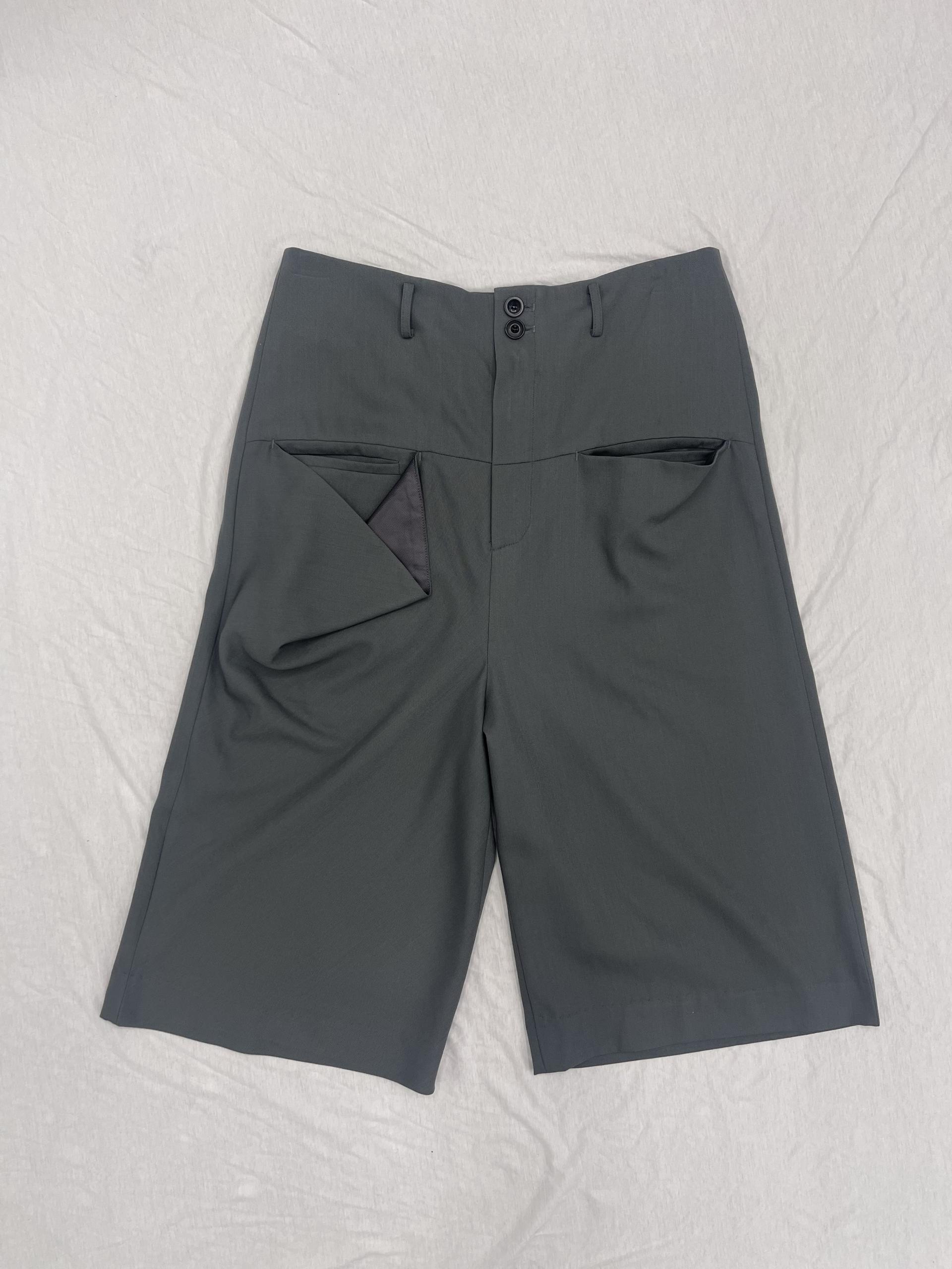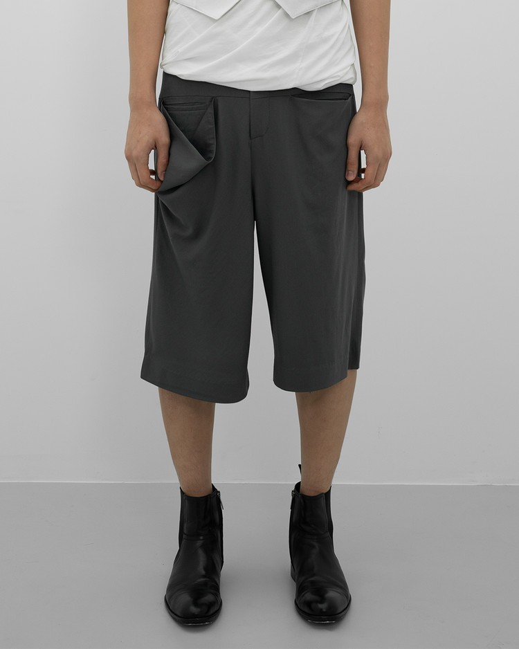 드레이프되는 포켓의 울 숏츠 입니다. 바이어스 재단을 통해 부드럽게 떨어지는 주머니 주름이 특징입니다.