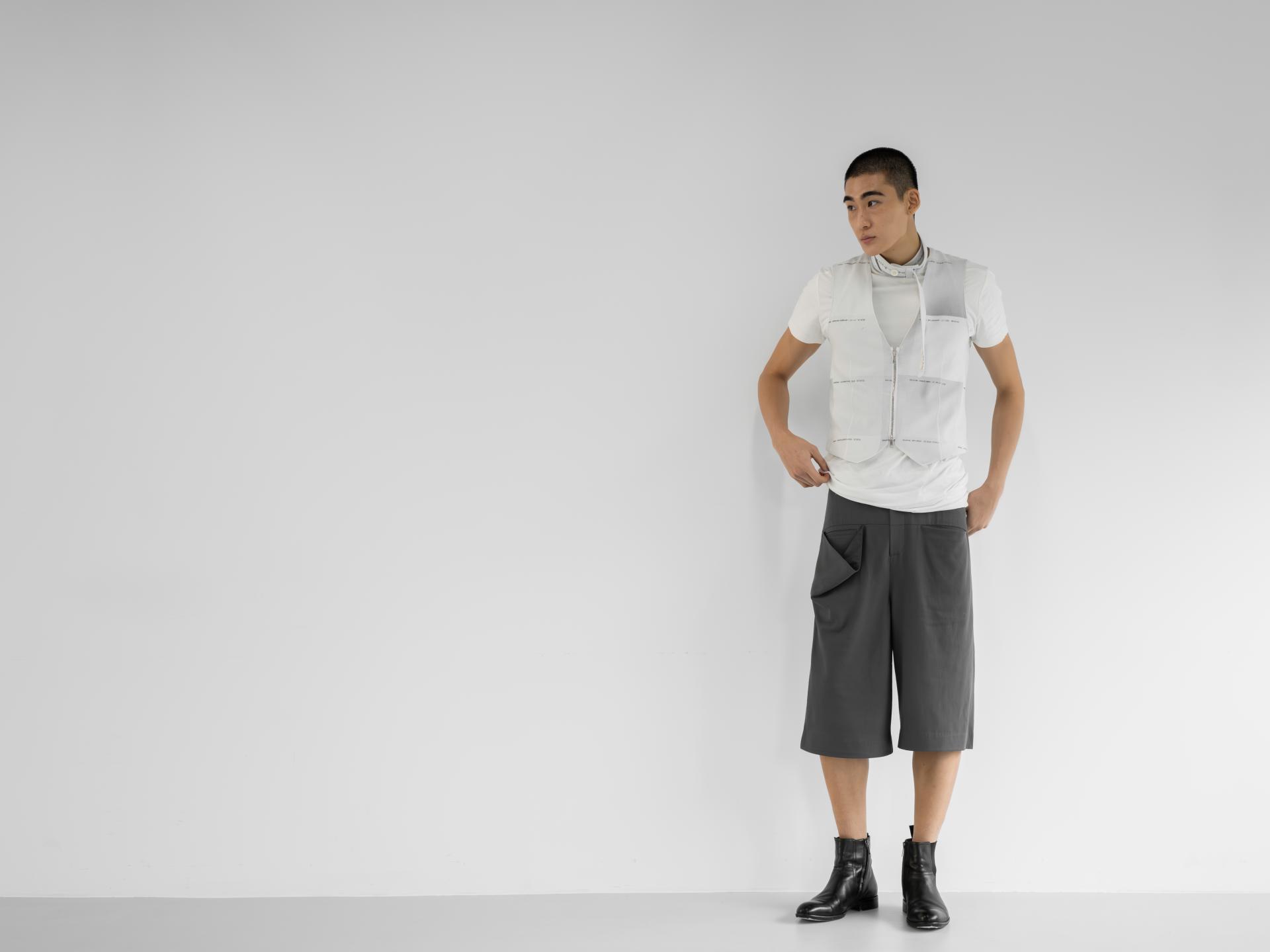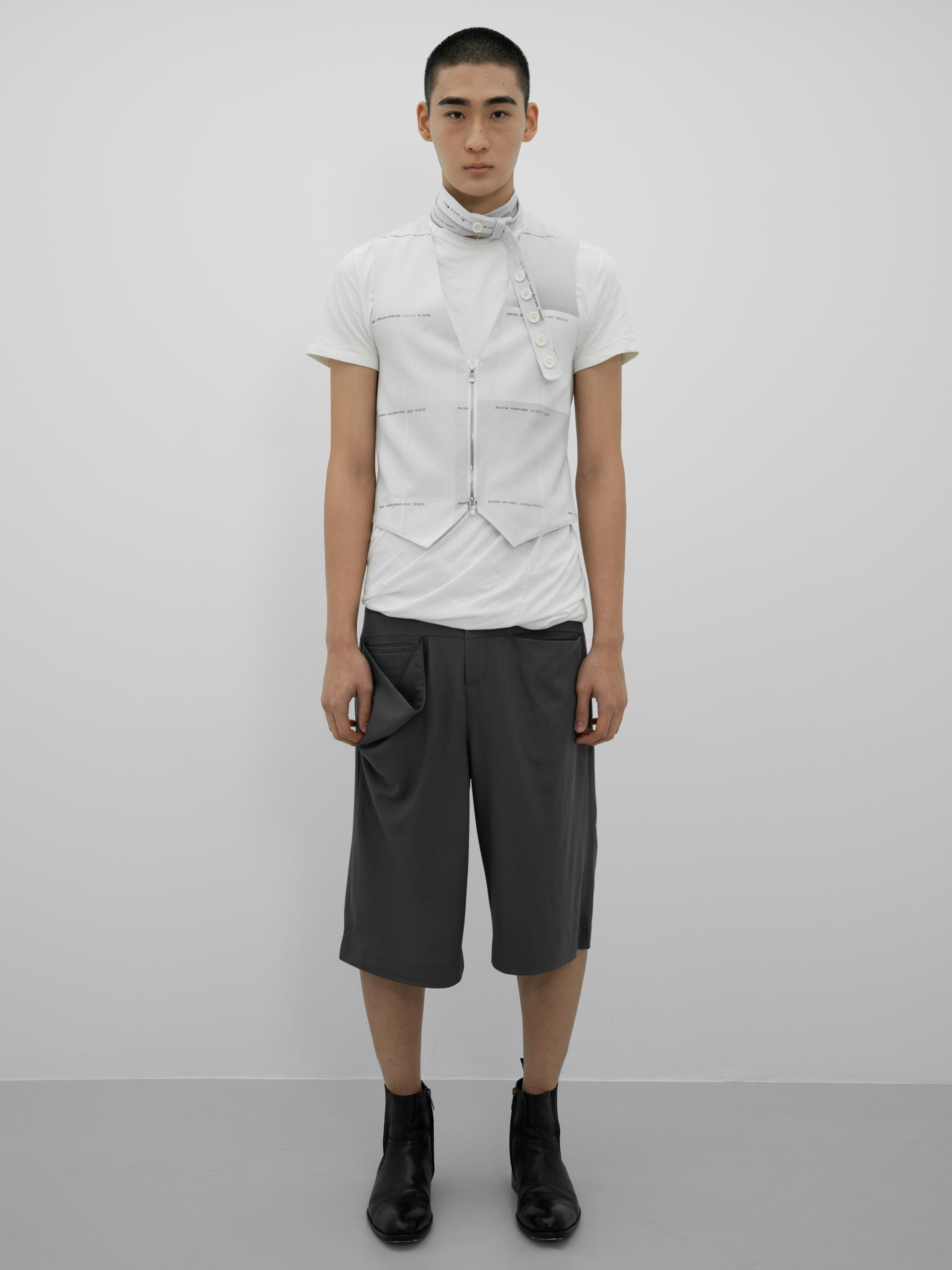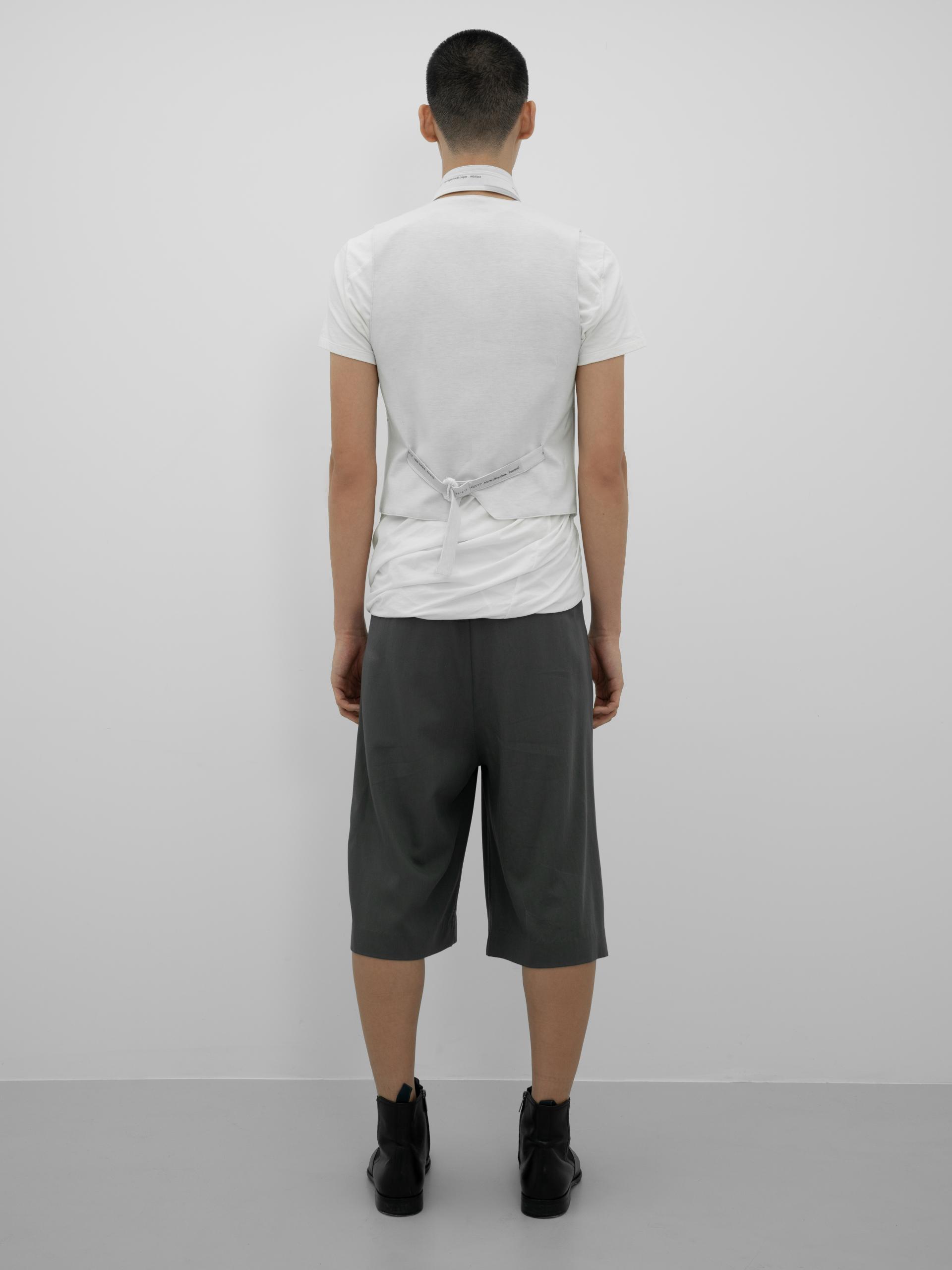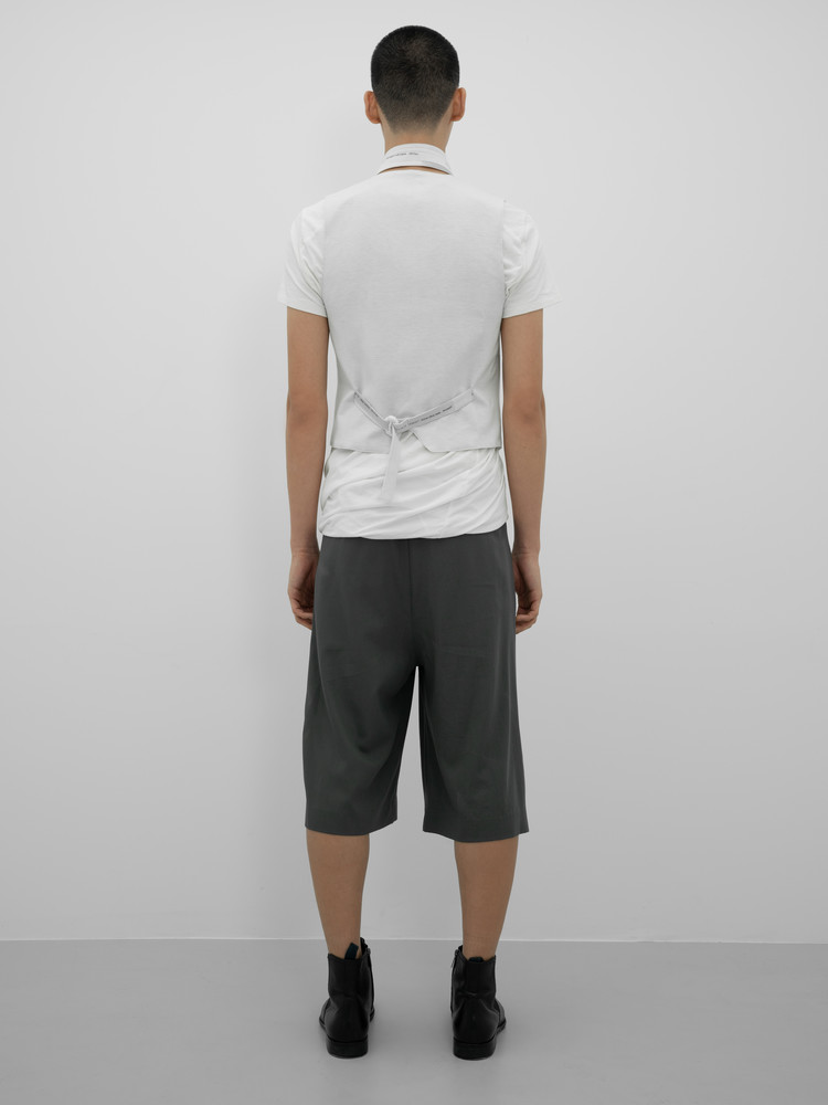 드레이프되는 포켓의 울 숏츠 입니다. 바이어스 재단을 통해 부드럽게 떨어지는 주머니 주름이 특징입니다.