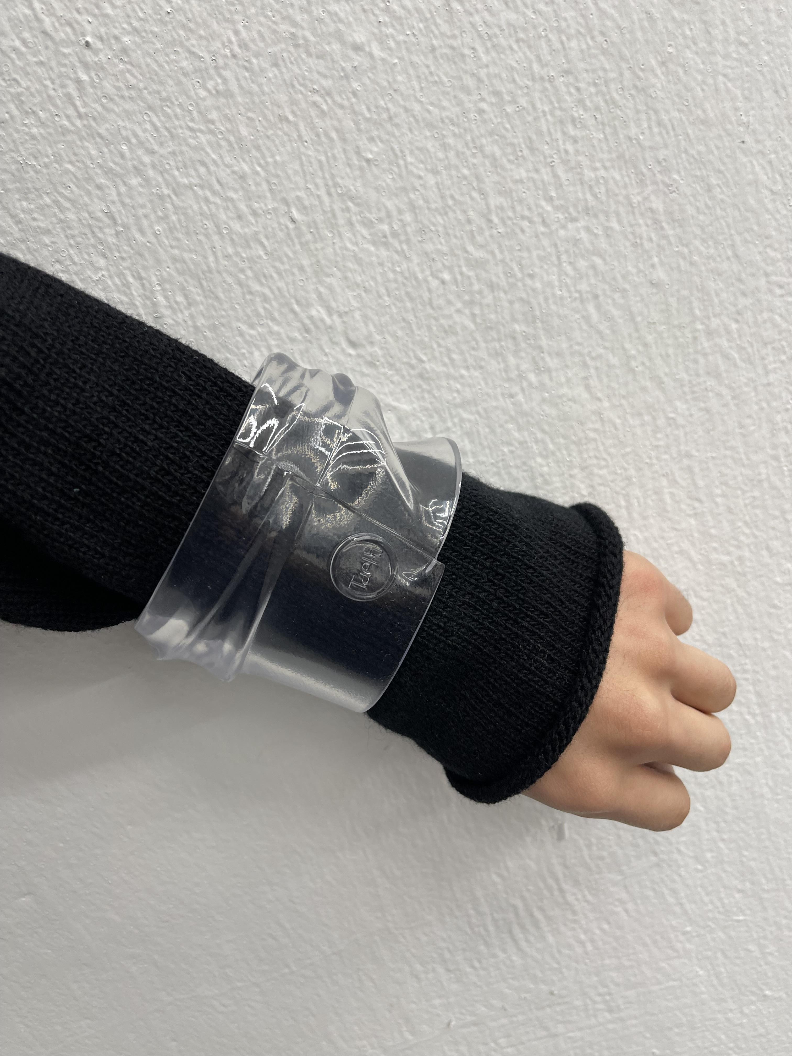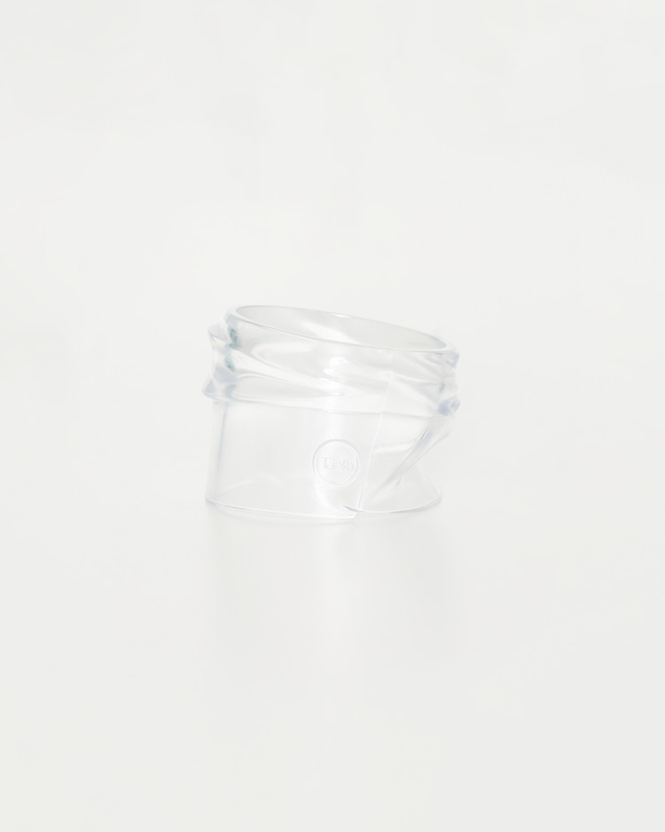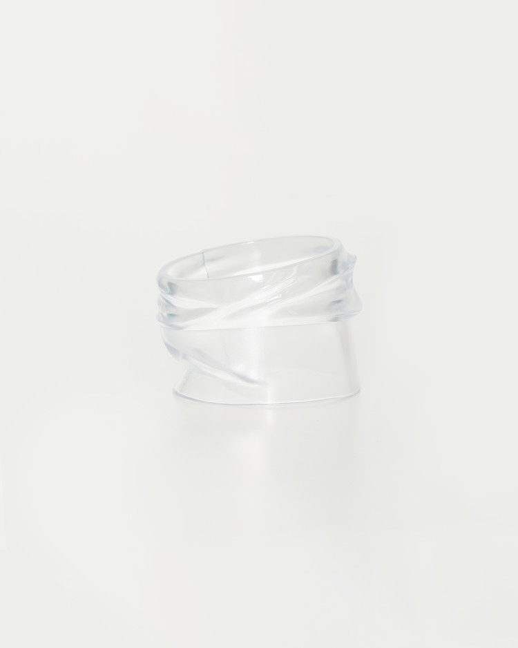 Transparent bangle shaped after the silhouette of a shirt cuff.
