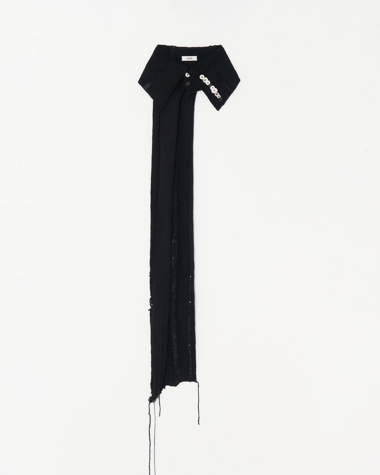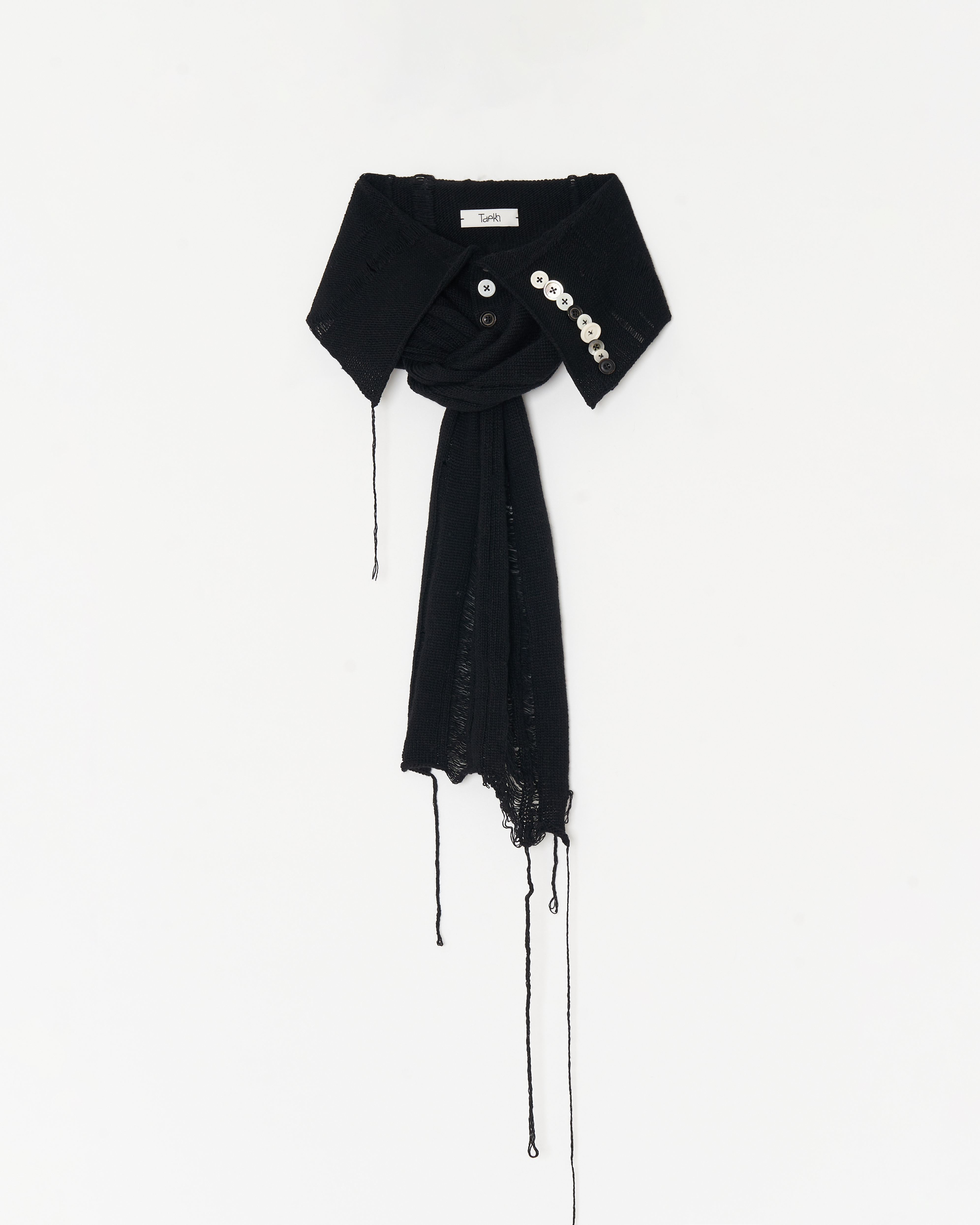 Collar shaped cashmere Scarf with button work detail.