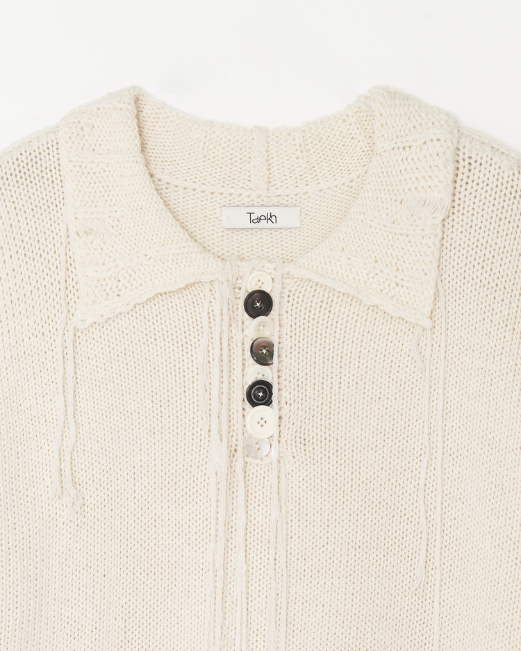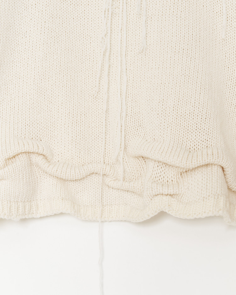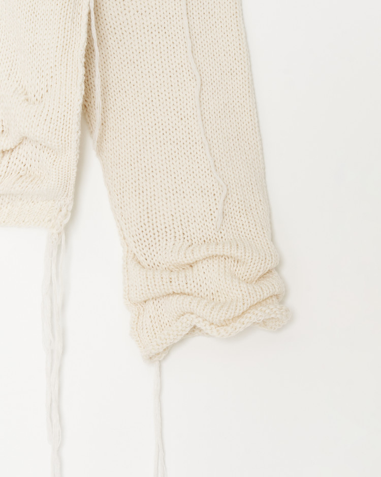청키하게 제작된 디스트레스 니트의 아이보리 버젼 입니다. 캐시미어, 울 원사를 사용해 부드럽고 따뜻한 촉감이 특징입니다.